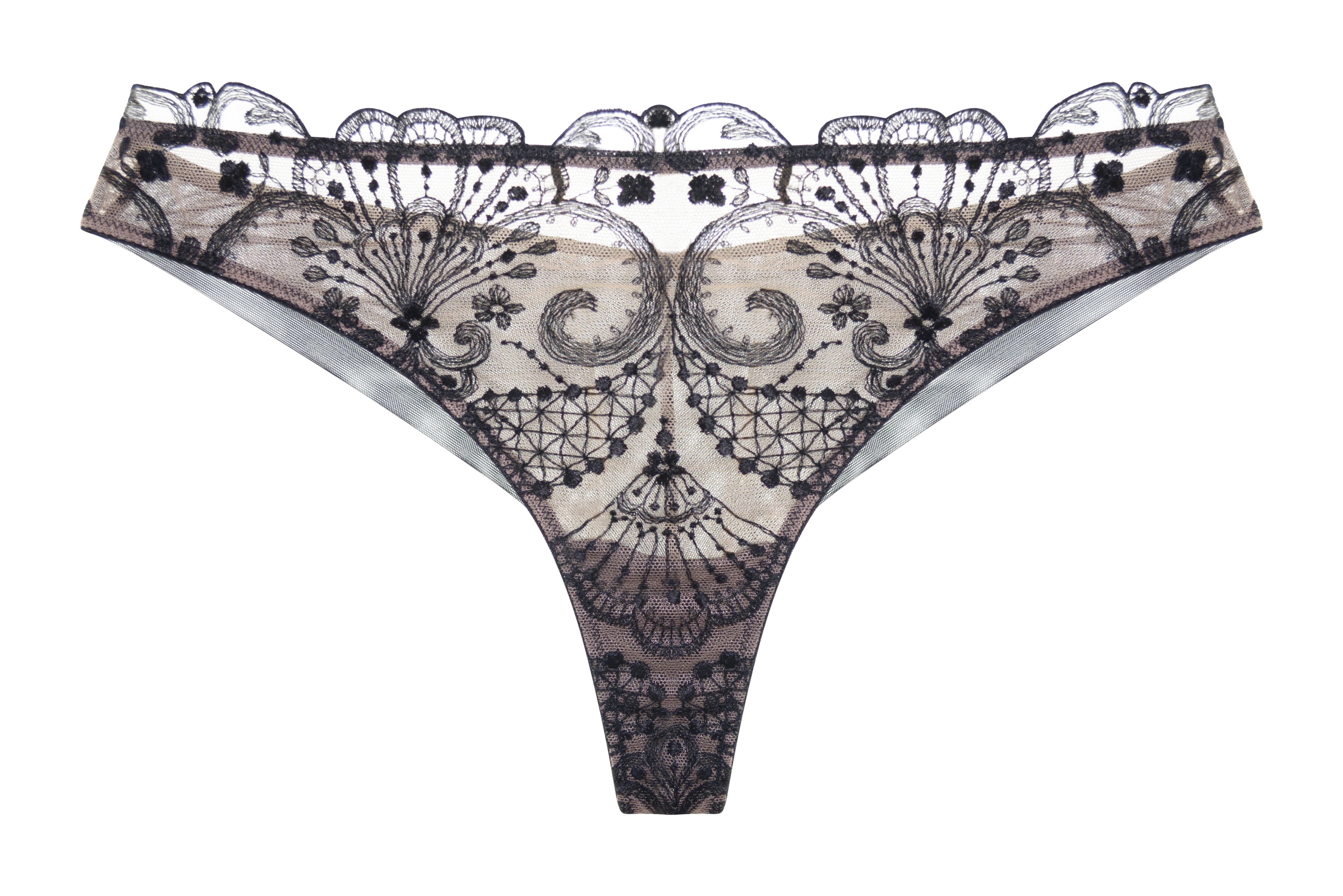 Spotlight embroidered thong - black