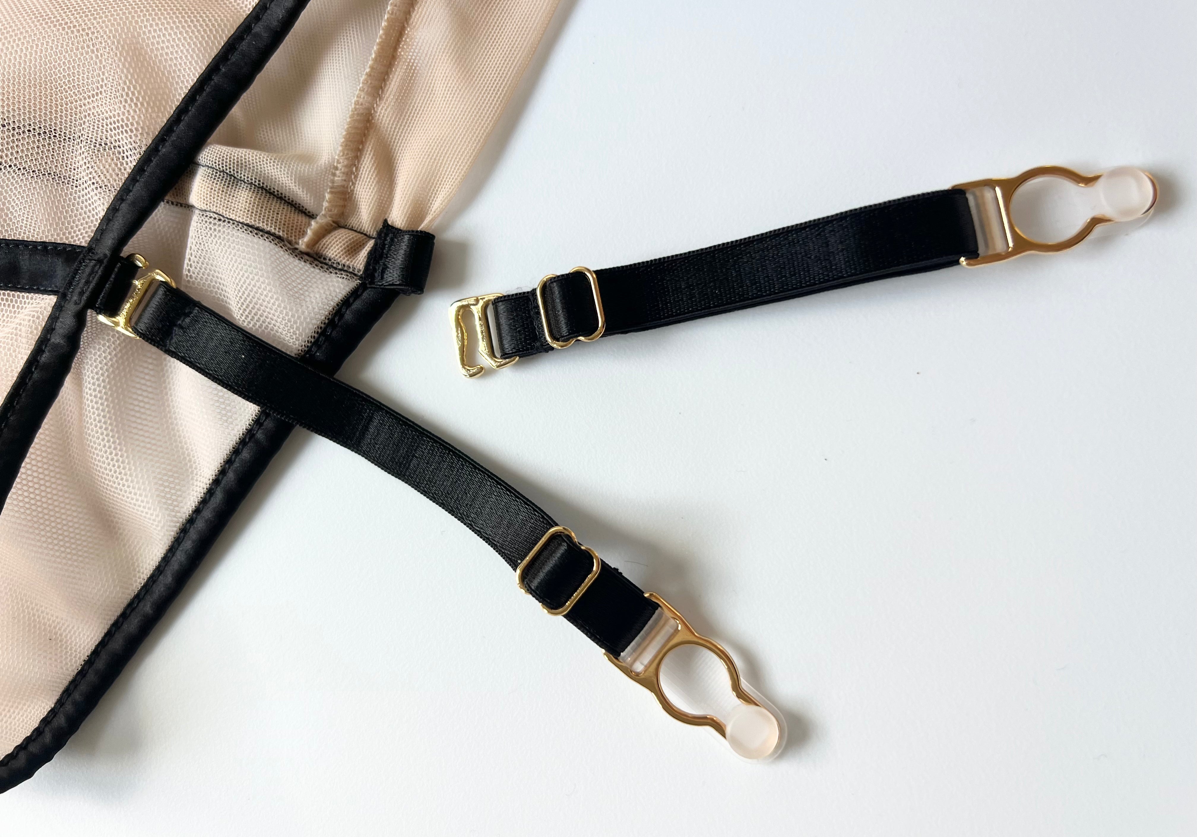 Stencil high waist keyhole panty is a modern, sexy update of a classic silhouette. Delicate tulle and Italian mesh bring just a hint of sheerness, while providing coverage and light shaping. A 24K plated gold swan hook back closure makes for an easy slip-on and slip-off, while removable suspender straps provide versatility for a boudoir-inspired or understated everyday look.