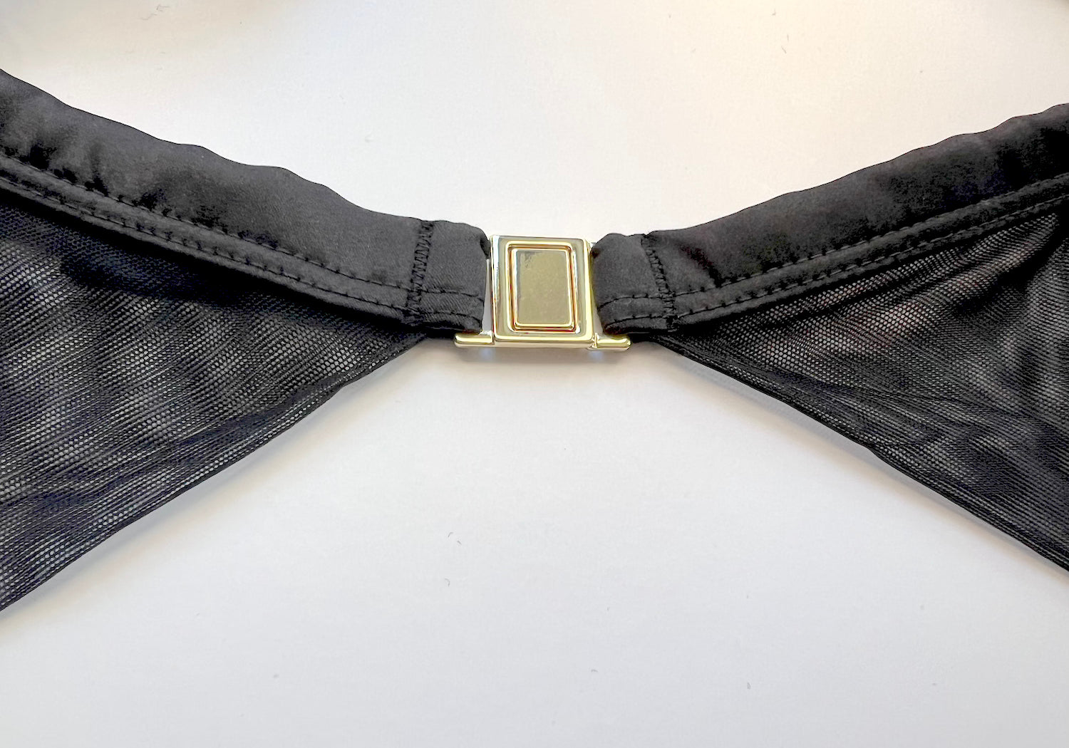 Stretch silk encased waistband with 24K gold plated clip